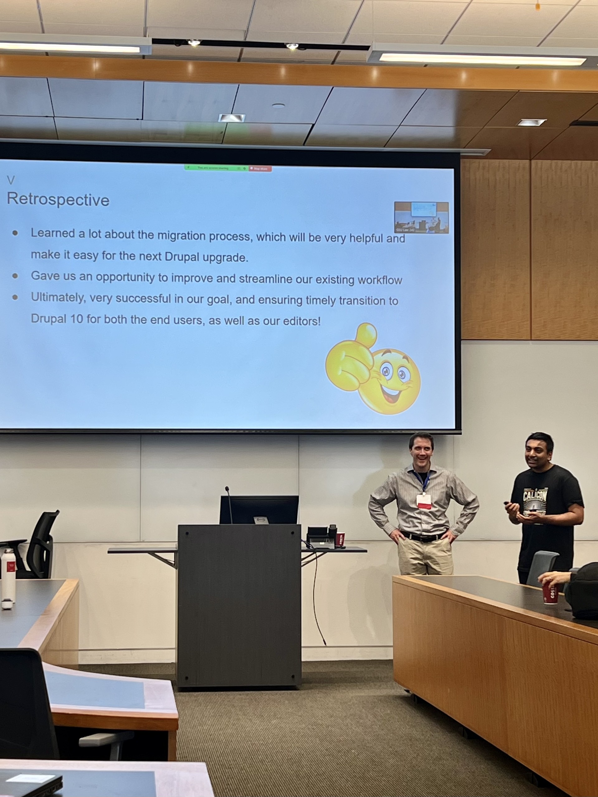 In order for new content to reach its audience on the LII website and beyond, the LII engineering team works in the background to ensure that our Content Management System (CMS) remains secure, usable, and reliable. This year, the engineering team completed the significant but extremely unglamorous project of bringing a major CMS upgrade to completion. This upgrade presented such a challenge that the need for it in units across campus merited mention as a University-wide technical debt problem by Cornell’s Chief Global Information Officer Dr. Curt Cole in his October Emerging Tech Dialogue presentation to University IT staff members. The timely execution of the upgrade, which came with an immovable January 5, 2025 deadline, without major disruption to the public was a major achievement for our team, especially DevOps engineer Eric Gullufsen and developer Vivek Kumar. Eric and Vivek gave a presentation at the annual Center for Computer Assisted Legal Instruction (CALI) Conference in which they shared their lessons learned with law school technology specialists from across the country.